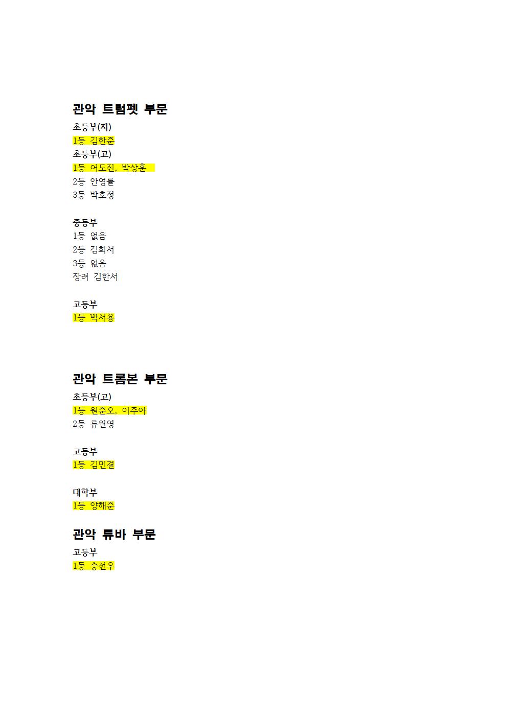 제32회 서울오케스트라 콩쿠르 심사결과표[관악부문]
