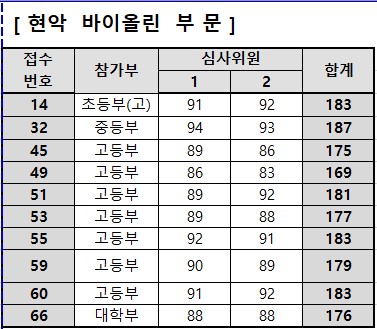 제32회 서울오케스트라 콩쿠르 심사결과표[현악부문]